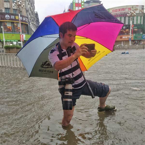 這十年,黃超賢足跡踏遍全縣所有行政村、80%左右的自然村,現(xiàn)在自駕車下鄉(xiāng)采訪不用導航,被同事稱為“活地圖、佛岡通”。由于單位外地的同事較多,黃超賢每年春節(jié)假期都將休假的機會讓給外地的同事。從業(yè)十一年,其中十年的正月初一,一年的除夕值班。2022年6月22日,黃超賢到龍山鎮(zhèn)下岳村采訪抗洪救災,由于胃痛,早上只吃了一碗粥就出發(fā)了,一直采訪到中午1點多,村干部叫他吃快餐再走,但他發(fā)現(xiàn),由于洪水圍困,物資運送比較困難,一線抗洪的工作人員可能不夠飯吃時,他毅然拒絕了,直到下午2點鐘回到家才吃午飯。平時單位的攝影器材臟了,他都會主動擦拭;單位的攝像機、單反相機、無人機、三腳架等器材壞了,小問題能自己修理的他都主動修理,自己不能修理的也積極聯(lián)系寄修,并先行墊付費用,費時耗力。隨著名氣的增大,越來越多的單位和個人,邀請他幫忙拍照或者提供影像,黃超賢都盡量滿足,經(jīng)常犧牲休息時間。有人對他說,其實你可以收取費用的,但黃超賢表示,收不收錢無所謂啦,只要拍這些影像能宣傳推廣佛岡就行了!近年來,受疫情影響,佛岡不少農(nóng)產(chǎn)品遭遇滯銷困境,黃超賢結(jié)合佛岡縣融媒體中心開展的戰(zhàn)“疫”助農(nóng)行動,通過刊播助農(nóng)報道、發(fā)布求購信息等方式,切實解決種養(yǎng)殖戶的急難愁盼問題,比如為三八眾富蘭花基地2萬多盤蘭花推廣。此外,黃超賢先后動員清遠市鄉(xiāng)村新聞官杜鵑為上岳村200畝8萬斤蜜絲棗,黃塱村35畝黑皮冬瓜播報推廣;動員協(xié)助清遠市鄉(xiāng)村新聞官萬清珂為竹山村萬斤葛粉播報推廣;動員鄉(xiāng)村新聞官黃灼東為四九水果專業(yè)合作社450畝200多萬斤砂糖桔播報推廣,均收到較好的效果。