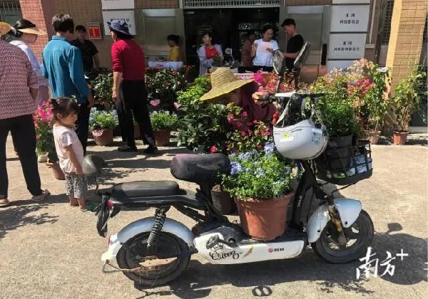 村民帶著用積分兌換的綠植回家。羅沅琪 攝