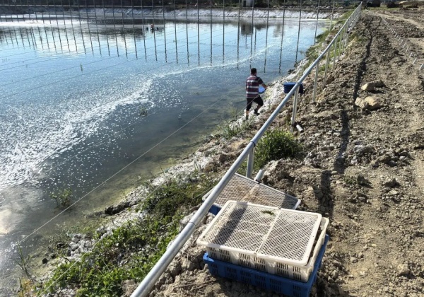 美麗漁場(chǎng)投放蝦苗。通訊員供圖