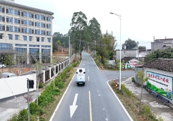 無(wú)人車穿梭在鄉(xiāng)村道路上送餐。清遠(yuǎn)日?qǐng)?bào)簽約攝影 黃超賢 攝
