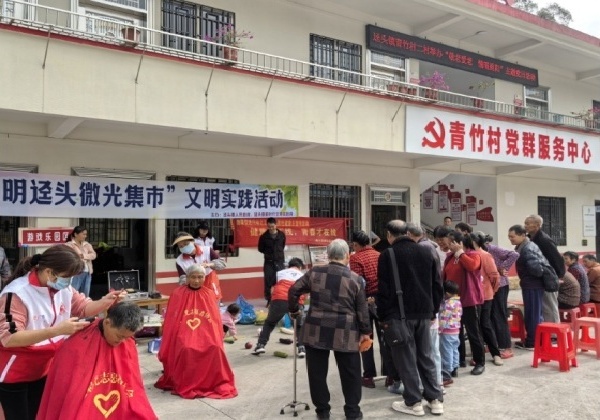 逕頭鎮(zhèn)新時(shí)代文明實(shí)踐所在青竹村委會(huì)開展的“微光集市”志愿服務(wù)活動(dòng)