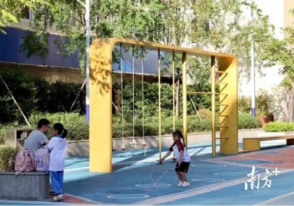 放學(xué)后,孩子們在建設(shè)路街心公園玩耍