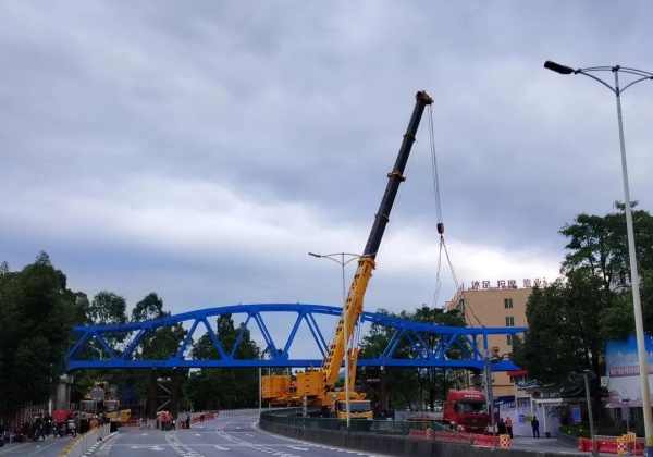 2024年10月,項(xiàng)目經(jīng)上級(jí)部門(mén)審定;2025年2月起,項(xiàng)目完成立項(xiàng)、施工圖設(shè)計(jì)、工程預(yù)算編制及招投標(biāo)等工作;8月25日,項(xiàng)目正式動(dòng)工建設(shè)。目前項(xiàng)目已完成全部樁基、7條立柱及系梁澆筑,11月12日順利完成鋼桁架吊裝,整體工程進(jìn)度達(dá)70%。按照計(jì)劃,天橋?qū)⒂?2月初完成主體建設(shè),12月底全面竣工,待交工驗(yàn)收合格后正式投用。